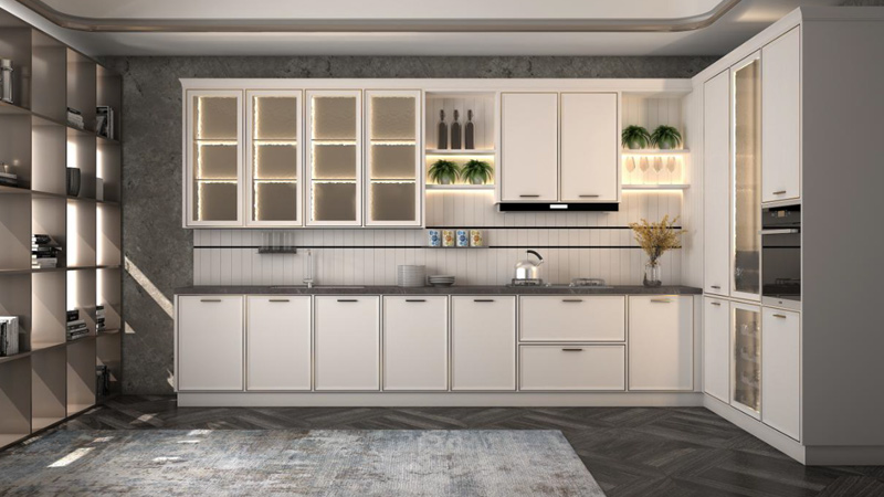 细腻的质感金属线条点缀柔雅白门板
