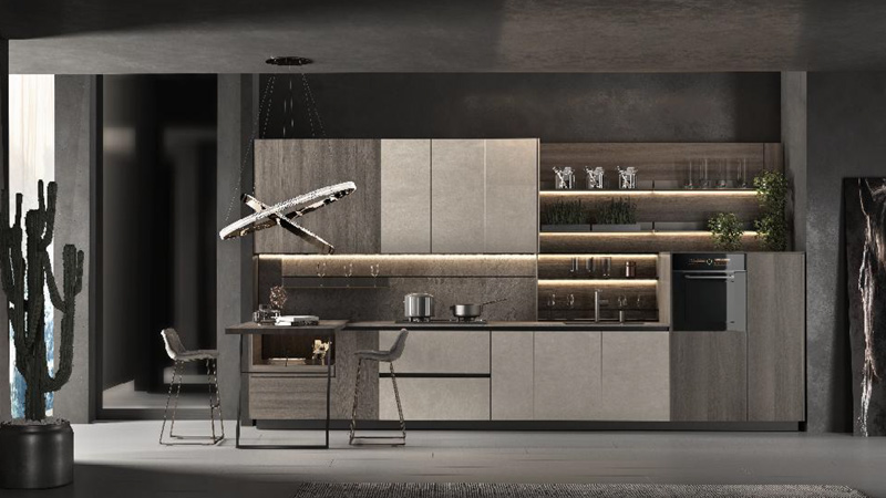 一字型直线结构布局设计简洁明了,适用于中小户型,收纳功能齐全。整体采用素雅色系,为客户打造一套小巧精美舒适的小资产品。