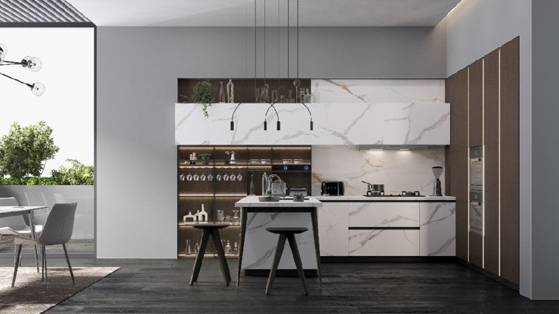 大而雅的极简轻奢之美刚朗的直线条映衬绅士风范木纹与暖白浮雕门板的肌理触感让空间更具艺术